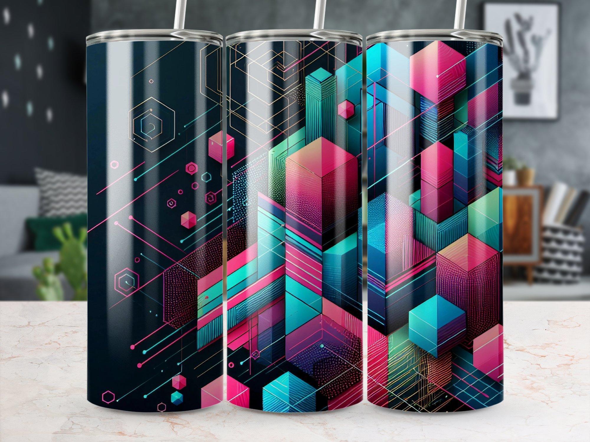 Discover our eco-friendly tumblers with vibrant geometric abstract art The colourful design makes it perfect for adding a touch of personality